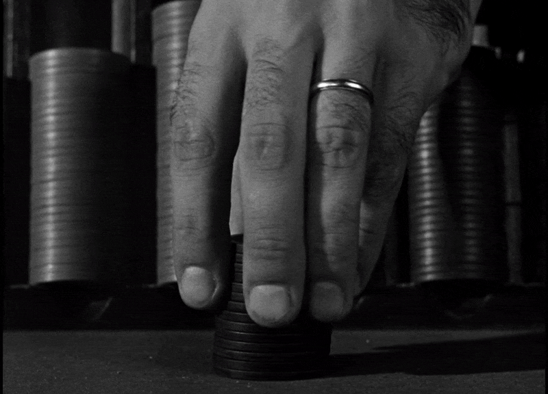 The camera admiringly lingering on the hands of casino dealers as they work.
